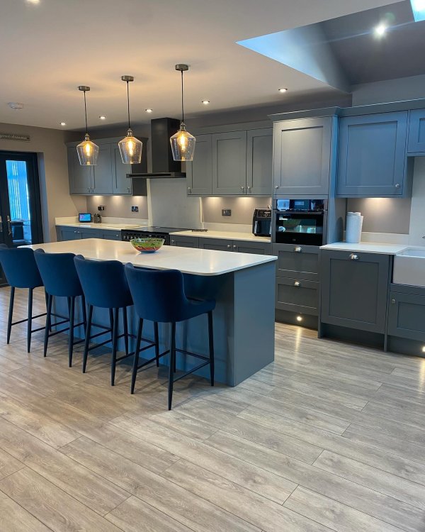 Featuring a solid-wood construction, woodgrain texture, and painted finish, this front has a traditional appearance that will look at home within interiors inspired by classic tailoring. With a square-edged border and dusk-blue hue, it offers a modern update on shaker style, and when combined with our in-frame profiles it will elevate any interior. Adding an extra border around the door front, this decorative detail will accentuate a stately appeal for a design that will transcend trends.